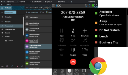 Nebolo by skvelé, keby ste mohli uskutočňovať, prijímať a spracovávať všetky svoje hovory z jedného centrálneho rozhrania, ako aj kontrolovať statusy svojich kolegov, odpovedať na prichádzajúce správy z chatu a uskutočňovať videohovory? S webovým klientom 3CX, ako softvérovým telefónom, je možné toto všetko a ešte oveľa viac. Bez ohľadu na to, či ste v kancelárii, doma alebo na cestách , s webovým klientom 3CX výrazne znížite množstvo administratívnej práce a tiež náklady. S rozšírením prehliadača 3CX o Google Chrome môžete vybavovať hovory priamo z prehliadača bez aktívneho používania webového klienta. Začnite hovory priamo z Microsoftu 365 alebo CRM.